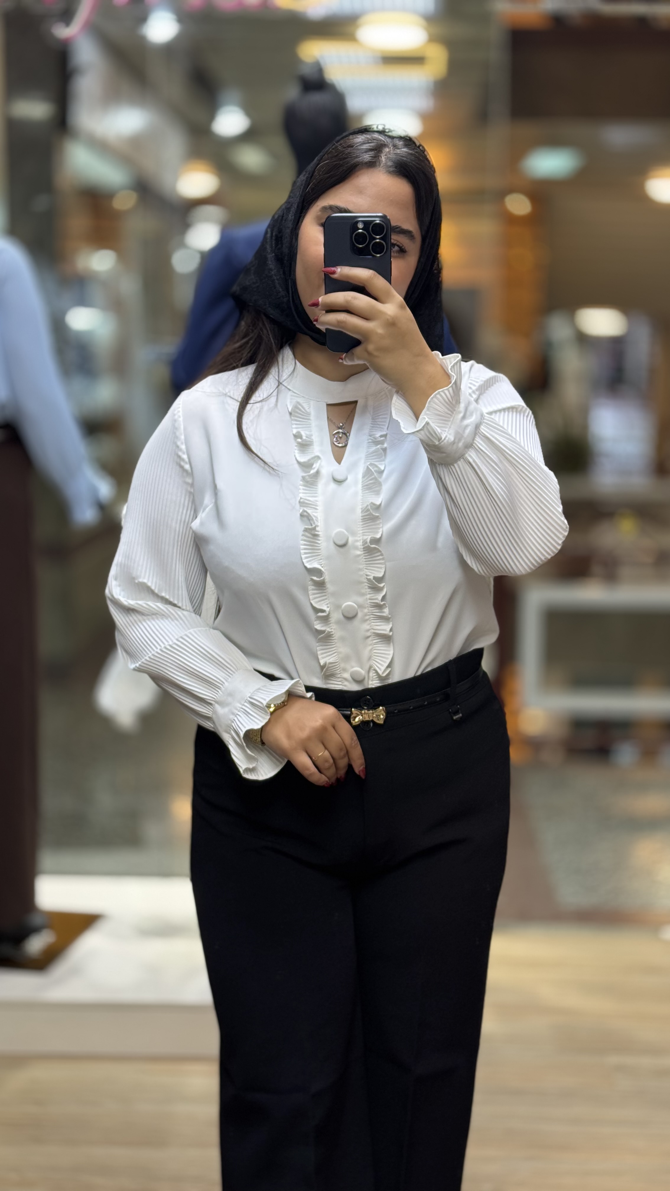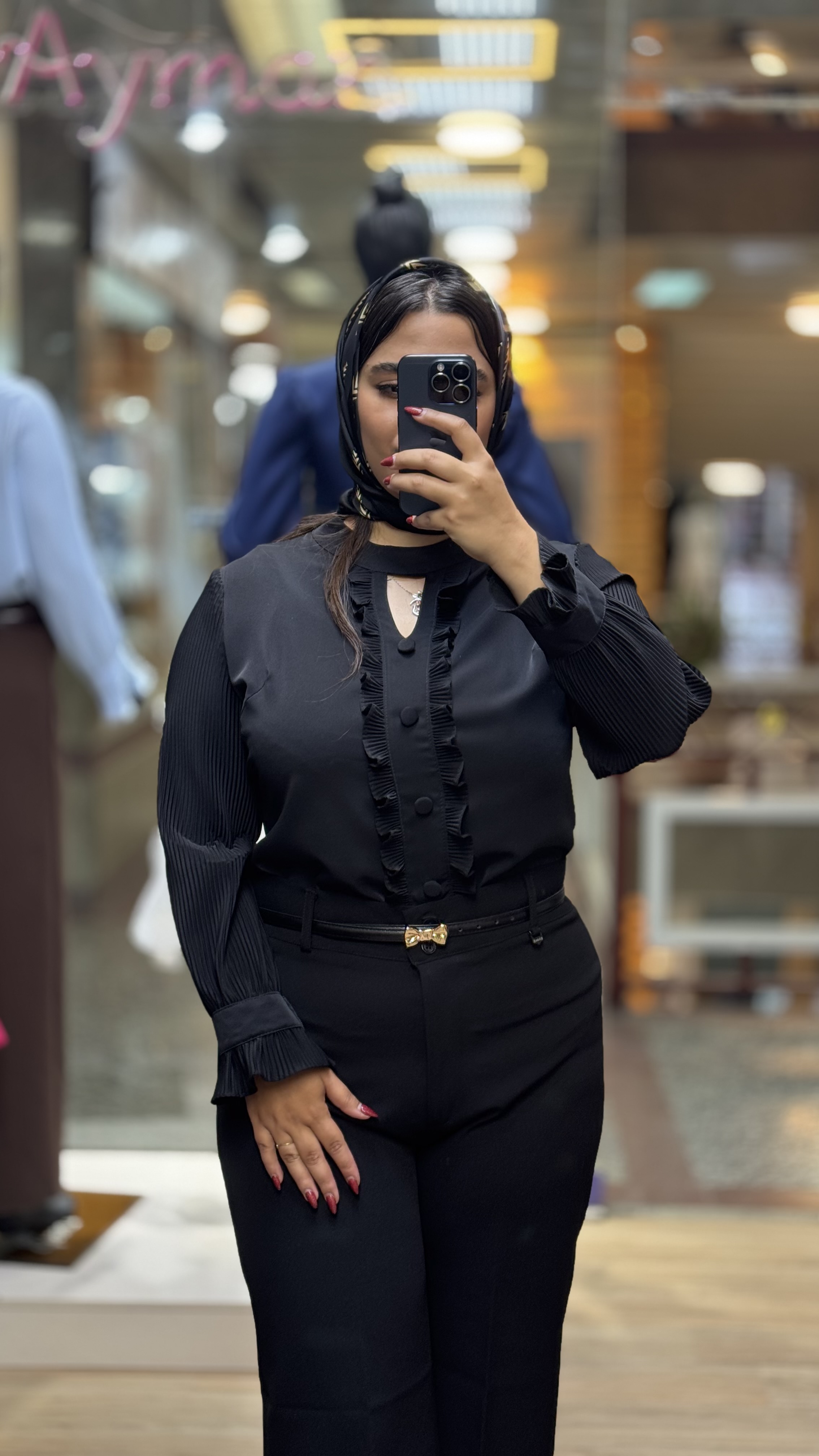 شومیز فرانک با طراحی و دیتیل جذاب که بپوشی عاشقش میشی جنس پارچه کرپ الیزه و آستین کار پلیسه هست دقت کنید اندازه سایز های مختلف پایین مینویسم👇🏼
