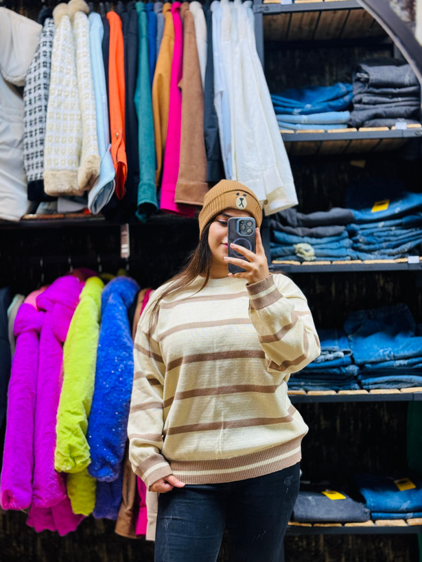 بافت راه راه دخترانه مدل شیک و پر طرفداری که همه عاشقشن جنس کار تضمینی هست دون دون و پرز نمیشه اینکار فری سایزه مناسب 40 تا 46 دقت کنید اندازه پایین مینویسم👇🏼