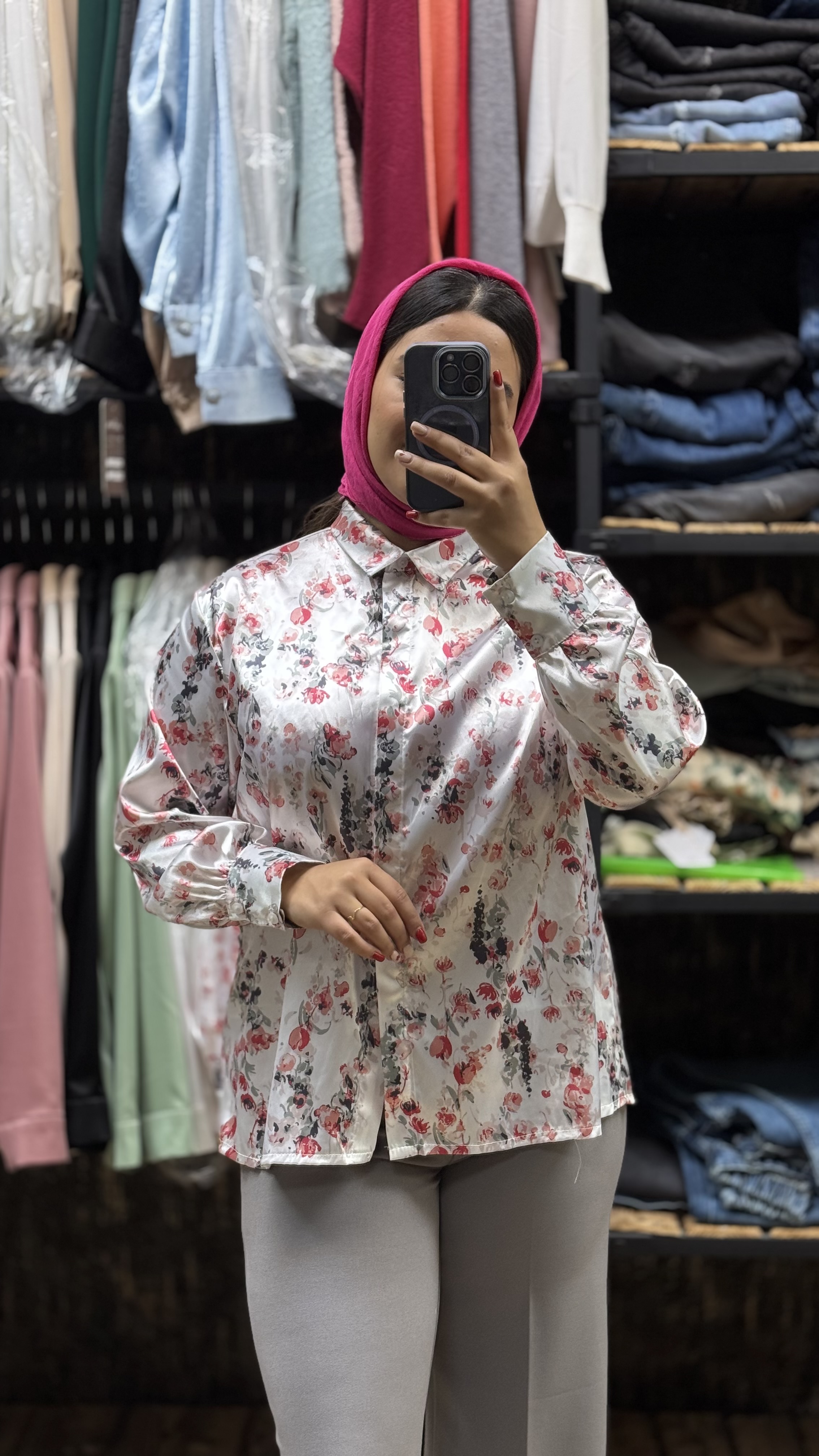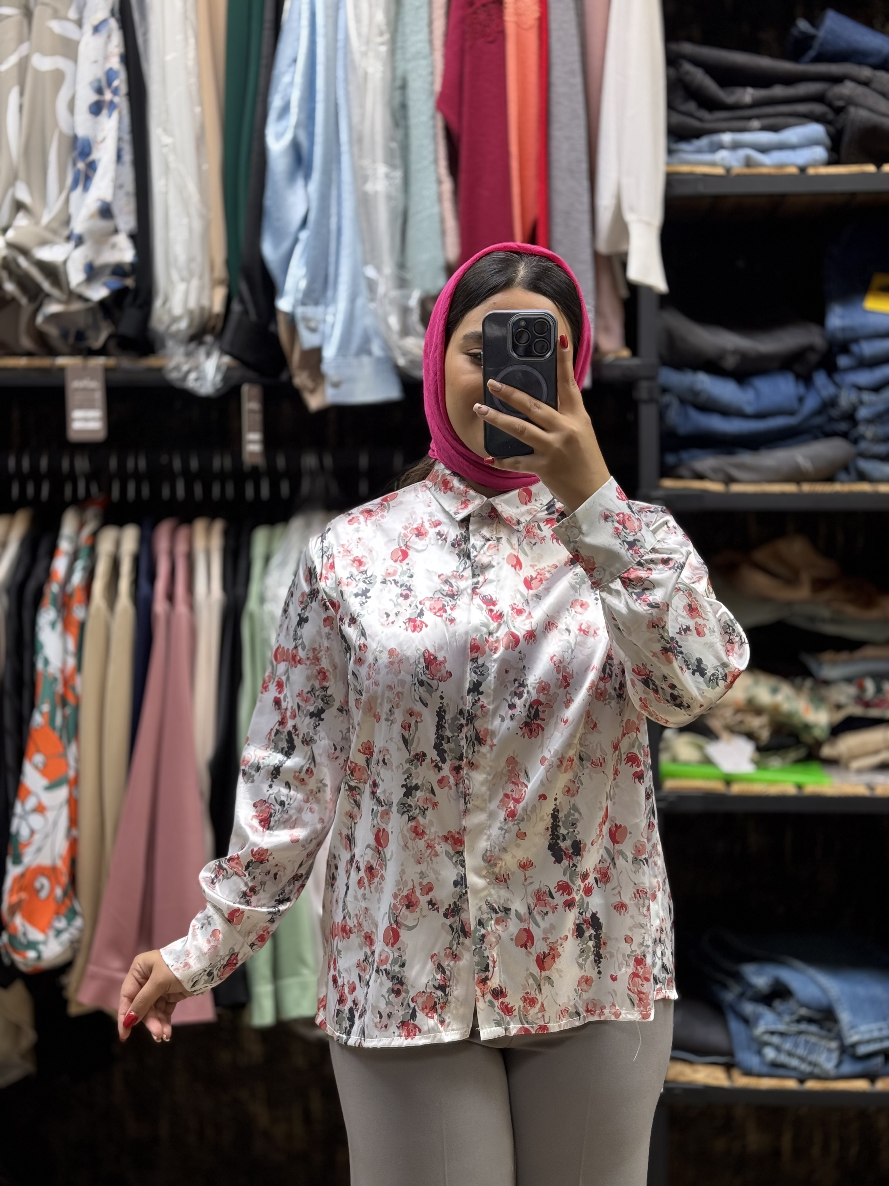 شومیز زنانه مدل گل قرمز جنس پارچه ساتن و تنخور خیلی شیکی داره پارچه و دوخت کار تضمینی هست دقت کنید اندازه پایین مینویسم👇🏼