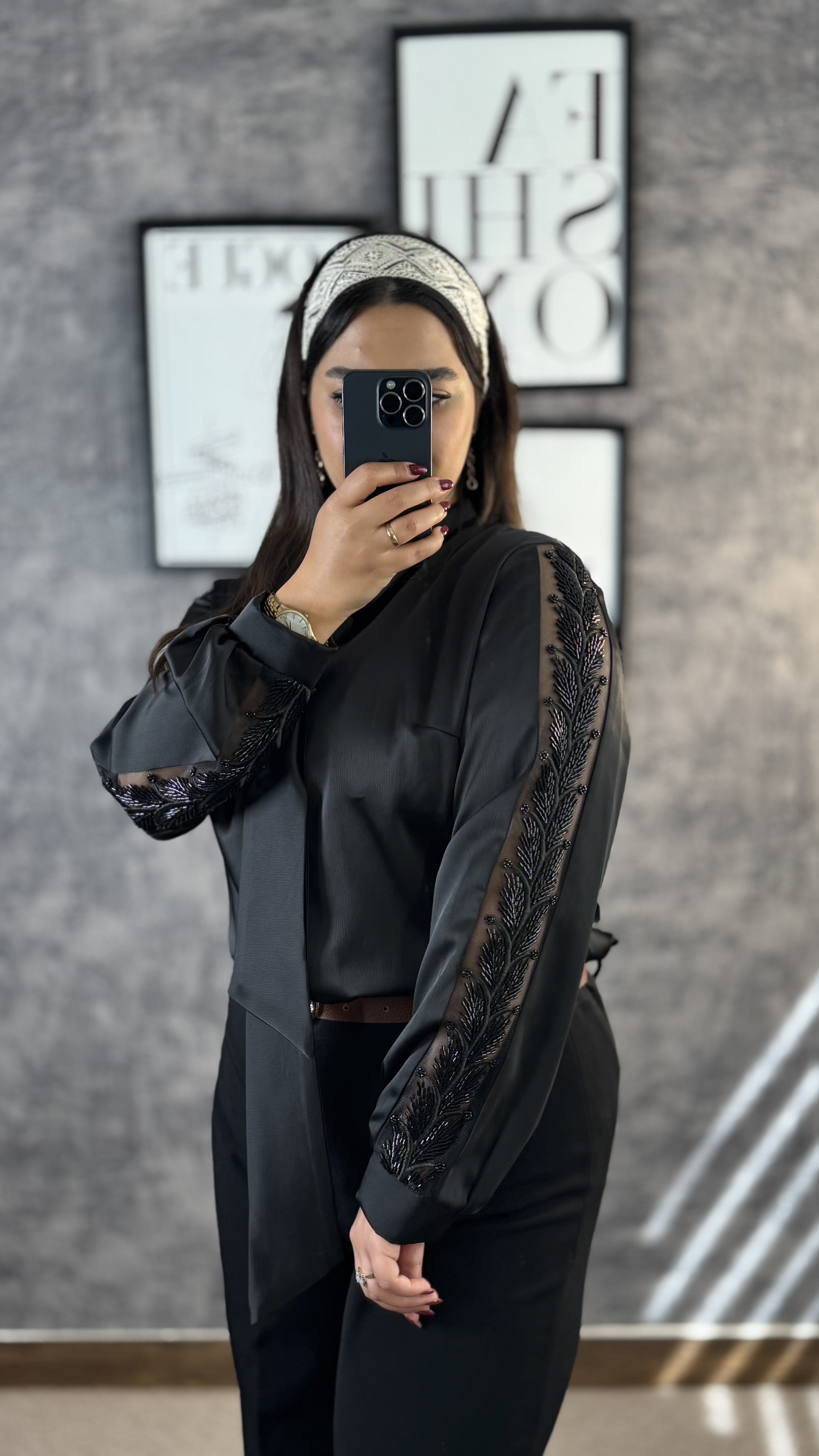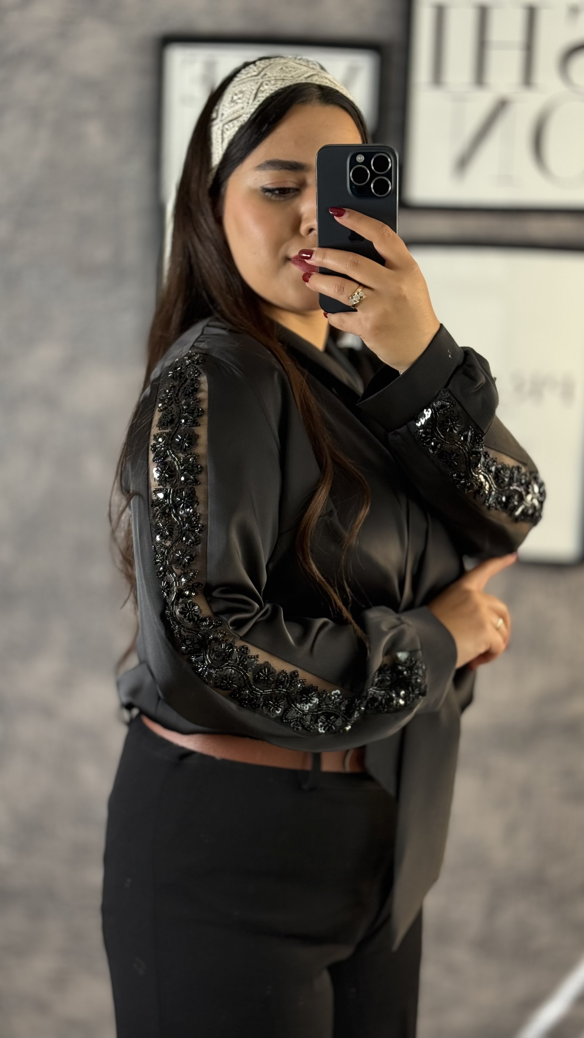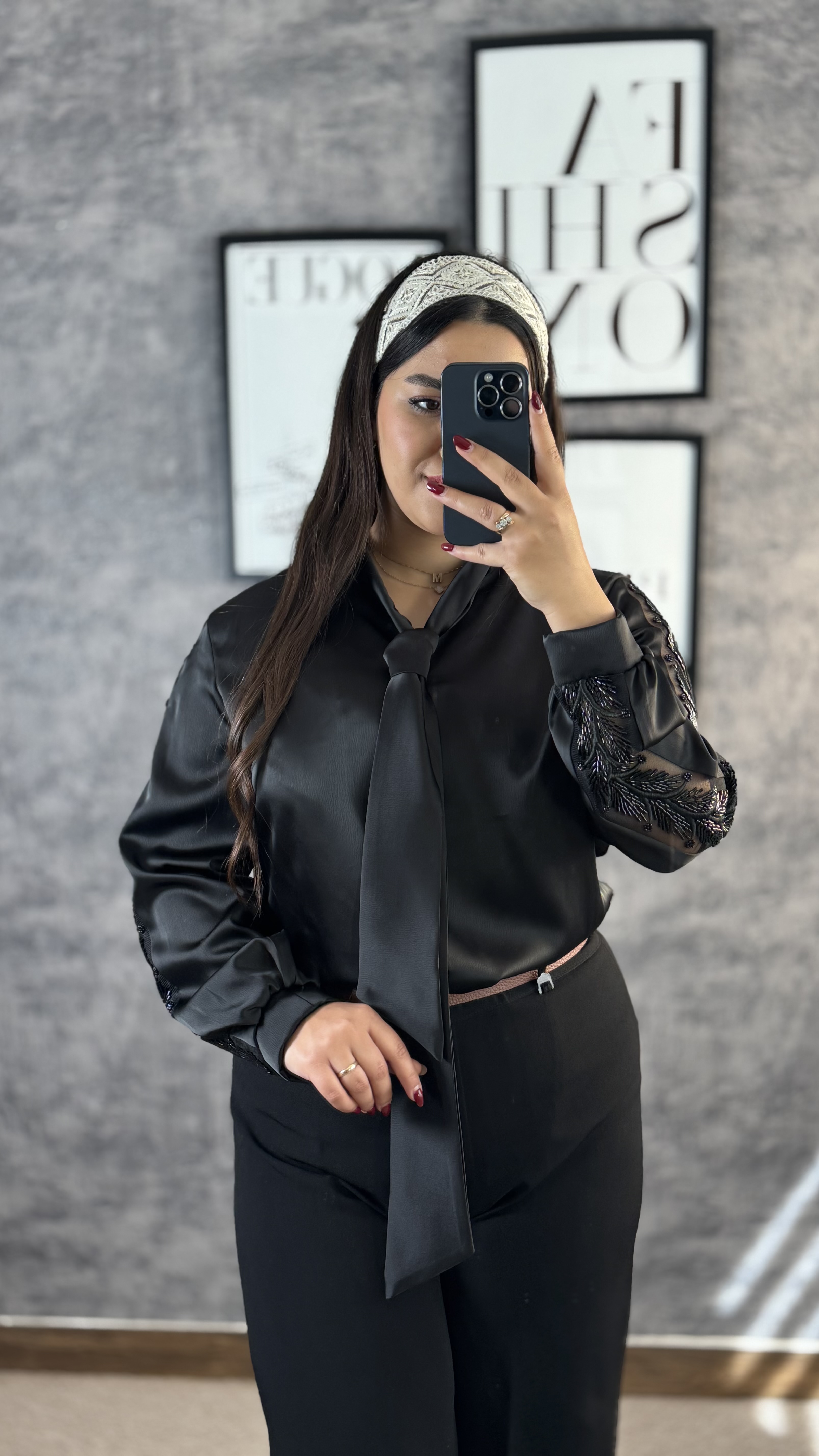 شومیز مجلسی شیک و جذاب که روی آستین کار سنگدوزی شده و مدل یقه کرواتی جذاب ترش کرده درصورت نامقاریت بودن باعکس میتونید مرجوع کنید دقت کنید اندازه پایین مینویسم👇🏼